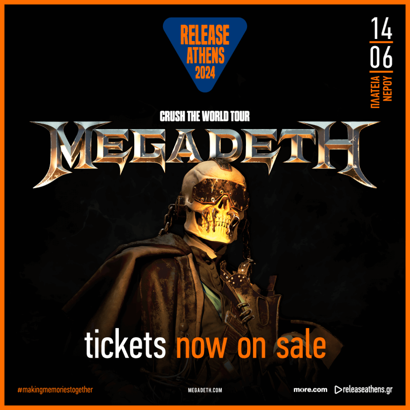 Η διάθεση των εισιτηρίων για την ιστορική εμφάνιση των Megadeth έχει ξεκινήσει! Ταυτόχρονα, γίνεται διαθέσιμο & το πρώτο διήμερο εισιτήριο του Release Athens 2024, για όσους επιθυμούν να παρακολουθήσουν δύο ανεπανάληπτες βραδιές του σκληρού ήχου σε super τιμή: Megadeth & more tba (14/6/24, Πλατεία Νερού) + Judas Priest, Bruce Dickinson & more tba (21/7/24, Πλατεία Νερού) προς 85€ (κέρδος 15€)