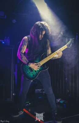 Melodic hooks, catchy guitar lines from guitarist Belisario Dimuzio over a mid-tempo beat from bassist Olivier Pinard and drummer David McGraw. Until only the third song of the night begins, Scourge of the Offspring, the pit has already warmed up and the headbanging is well underway, with Travis Ryan captivating us with his incredible vocal control and Josh Elmore’s guitar screaming for mercy.