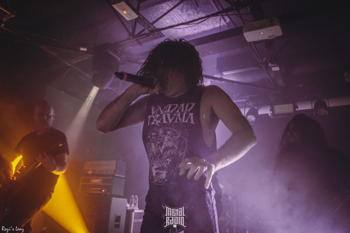 The venue is quite full and Vomit Forth are the first to take the stage. Based in Connecticut, Vomit Forth combine hardcore and death metal sounds and are generally known for their musical experimentation. They stayed on stage somewhere around 25 minutes, and swept everything. Distorted guitar sounds and blast beats with Vomit Forth’s vocalist, Kane Gelaznik, growling like a demon while never stopping for a moment to communicate with the crowd since you would often find him on the photo pit railing. With an intense and brutal setlist, the Connecticut quartet was thunderous and deservedly received a lot of enthusiastic applause.