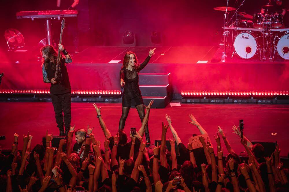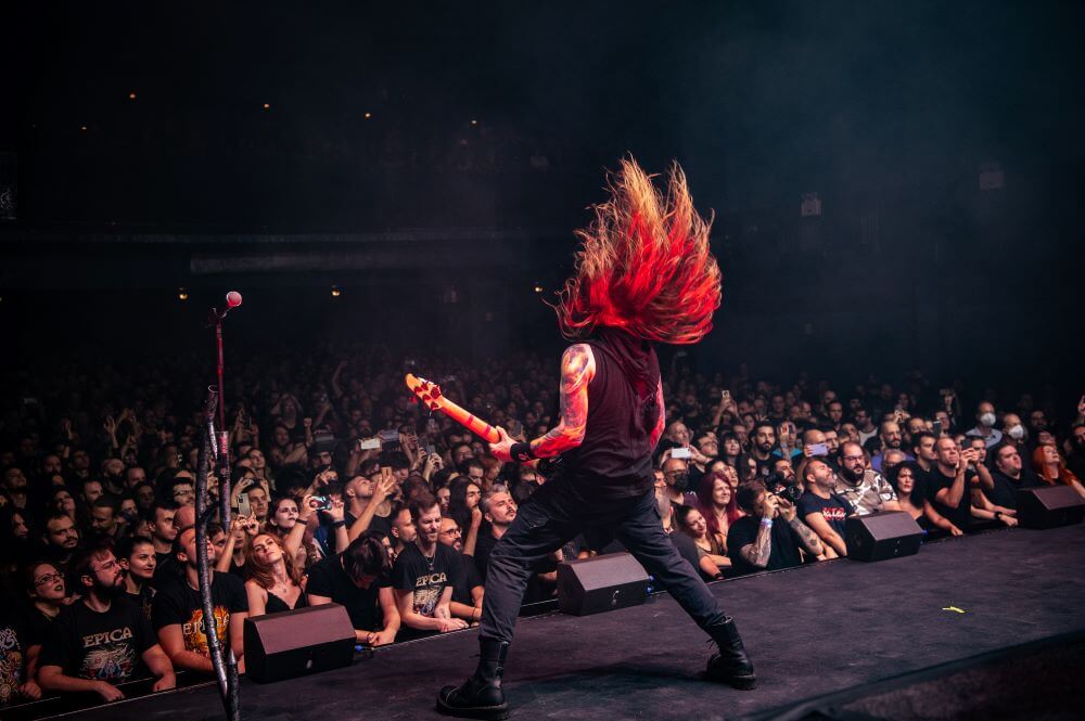 Δύο λεπτά πριν της 22.00, τα φώτα έκλεισαν και η ορχηστρική εισαγωγή προλόγισε την μπάντα που ανέβηκε στην σκηνή. Εξαιρετικός ήχος, από το πρώτο κιολας κομμάτι. H Simone κεντρικά στην σκηνή, πάνω στο βάθρο που είχε στηθεί στο πίσω μέρος του stage, έχοντας τα πλήκτρα και τα τύμπανα αριστερά και δεξιά της αντίστοιχα, επισφράγισε εξ αρχής πως μάλλον θα ήταν ιδιαίτερα καλή η βραδιά. Κρύσταλλο τόσο ο ήχος όσο και η απόδοση της. Και ήμαστε ακόμα στο ξεκίνημα. Κάτι που από την πρώτη στιγμή έγινε αντιληπτό, ήταν η απουσία του Mark Jansen, ο οποίος απουσίαζε καθώς απολάμβανε το δώρο της πατρότητας, μια απουσία όμως που κατ εμέ έγινε αντιληπτή μόνο ως προς το οπτικό μέρος, καθώς ο Asim Searah που τον αντικατέστησε τόσο κιθαριστικά όσο και φωνητικά (φοβερή φωνή, τρομερός όγκος) ήταν κάτι παραπάνω από εξαιρετικός. Το παλικάρι είναι θησαυρός, βρείτε τρόπο να τον κρατήσετε. Με μόλις λίγες μέρες, 2 εβδομάδες αν άκουσα καλά, προκειμένου να μάθει τα κομμάτια και λίγη βοήθεια με τους στίχους σε “σκονάκι”, δεν κατάλαβε κανένας τίποτα ως προς το τελικό αποτέλεσμα. Παλικάρι σας λέω.