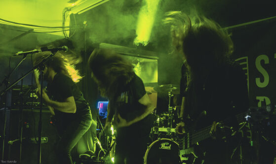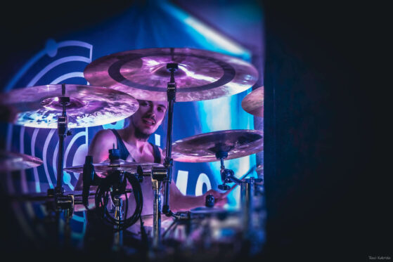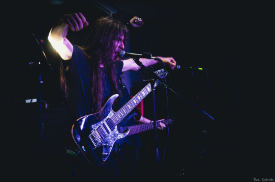 Next up on stage will be the French Fractal Universe, whose music I’m more familiar with, as I discovered them during the lockdown period. They have released four full studio albums, the most recent of which is 2021’s The Impassable Horizon. The atmosphere is definitely a bit heavier and darker, with smoke surrounding Fractal Universe, and progressive/technical death metal sounds. Double guitars, growling vocals and well-written melodies, with Fractal Universe delivering live what you hear on record. Vince Wilquin’s saxophone of course steals the show, with him switching between voice, guitar and saxophone very often during the live. Fractal Universe know their genre very well and they are also very good at delivering it live, pleasing those of us who already knew their music and winning over those who were listening to them for the first time!