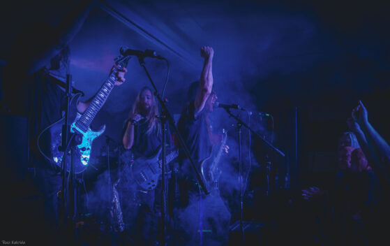 Next up on stage will be the French Fractal Universe, whose music I’m more familiar with, as I discovered them during the lockdown period. They have released four full studio albums, the most recent of which is 2021’s The Impassable Horizon. The atmosphere is definitely a bit heavier and darker, with smoke surrounding Fractal Universe, and progressive/technical death metal sounds. Double guitars, growling vocals and well-written melodies, with Fractal Universe delivering live what you hear on record. Vince Wilquin’s saxophone of course steals the show, with him switching between voice, guitar and saxophone very often during the live. Fractal Universe know their genre very well and they are also very good at delivering it live, pleasing those of us who already knew their music and winning over those who were listening to them for the first time!