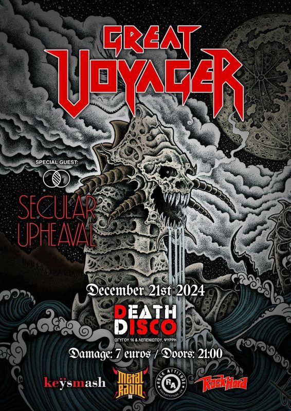 Οι Great VoyageR θα εμφανιστούν για πρώτη φορά στην σκηνή του Death Disco, προερχόμενοι από την Ευρωπαϊκή τους περιοδεία πιο δυναμικοί, στιβαροί και με ανανεωμένο line up, υποσχόμενοι για μια μοναδική εμφάνιση για τους λάτρεις του NWOTHM που θα βάλει στην νύχτα φωτιά..
