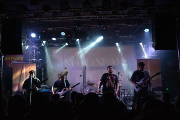 Επόμενοι στη σκηνή οι NON LINEAR. Εδώ θα βρείτε και την κριτική που είχαμε κάνει για το EP τους, μέρος του οποίου μας παρουσίασαν. Ο ήχος τους και ο τρόπος που είχαν δομήσει τα τραγούδια τους παραπέμπει σε metalcore djent ήχο και η μίξη καθαρών φωνητικών φέρνει στο νου συγκροτήματα τύπου BLEED FROM WITHIN. Κατά τη γνώμη μου με το χρόνο και αρκετή δουλειά στην σκηνική παρουσία και στα καθαρά φωνητικά έχουν να μας προσφέρουν πολύ ενδιαφέρουσες δημιουργίες.