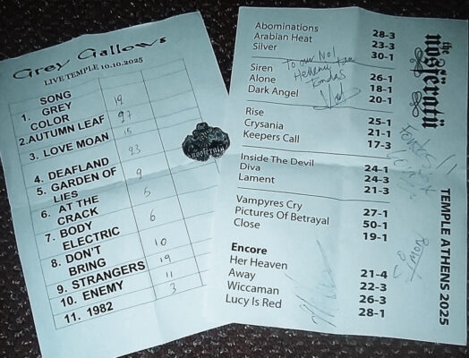 Goths party better; Ή απλά το old school goth έχει μια δική του ατμόσφαιρα που εγώ δεν την είχα ξαναβιώσει; Το σίγουρο είναι ότι η συναυλία που διοργάνωσε το Black Temple με την Orlock Promotions ήταν ένα προσεγμένο goth party με τα όλα του. Από το ατμοσφαρικό dj set των DJs George P / Malice F μέχρι τις ζωντανές εμφανίσεις των θρυλικών The Nosferatu (UK) αλλά και των Πατρινών Grey Gallows.