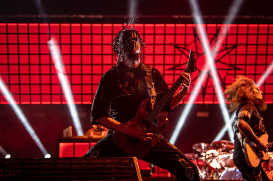 Λίγα λεπτά μετά τις 23.00 και το πανό των Slipknot φωτίζεται. Νομίζω δεν έχει ξανακοκκινίσει ποτέ τόσο η ανυπομονησία σε συναυλία. Μπορούσες να νιώσεις την προσμονή. Όλα τα κινητά στημένα να καταγράψουν την είσοδο των maggots και όταν τελικά αποκαλύπτεται η σκηνή αρχίζει η παραφροσύνη. Για εμένα που παρακολουθούσα πρώτη φορά τη μπάντα αυτό που βίωσα με έκανε να νιώσω ότι βλέπω ένα τεράστιο συγκρότημα. Αυτό που λέμε Larger Than Life. Εξαιρετικό stage show, απίστευτη ενέργεια επι σκηνής. Αληθινή επικοινωνία με το κοινό από ένα από τους καλύτερους front men που έχω δει ποτέ (όχι δεν συμφωνώ με όσους γκρίνιαξαν ότι μιλούσε πολύ). Ο Jay Weinberg πρέπει να χάνει περίπου 3 κιλά σε κάθε live, τόσο απόλυτα ισοπεδωτικός στα τύμπανα.