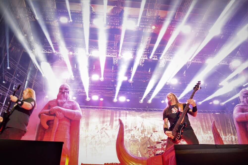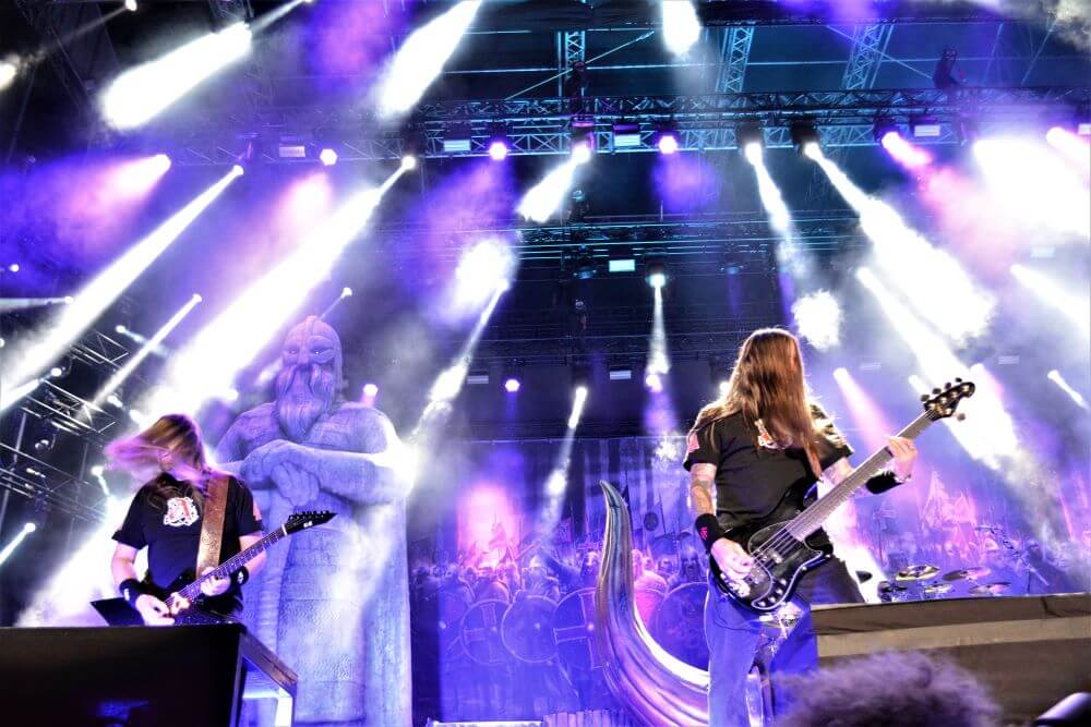Έντεκα πάρα δέκα και ανοίγει η αυλαία των AMON AMARTH για να αποκαλύψει το εντυπωσιακό σκηνικό των απόλυτων κυρίαρχων της σκηνής! Βγαίνουν στη σκηνή με καταδρομική ορμή και τα riff του Guardians Of Asgaard πλημυρίζουν την Πλατεία Νερού. Πανδαιμόνιο! Είναι η πρώτη φορά που οι AA παίζουν σε ανοιχτό φεστιβάλ επί Ελληνικού εδάφους και πρέπει να παραδεχτούμε ότι τους πάει ΤΟΟΟΟΣΟΟΟΟ πολύ! Και οι ίδιοι όμως όπως μας είπαν είχαν προσδοκίες, αλλά η λαοθάλασσα από κάτω απ’ τη σκηνή τις ξεπέρασε. Raven’s Flight και μια πολύ καλοστημένη «χορογραφία» στο φωτισμό συνοδεύει τα βαριά ριφ και τα growl του Johan. Αθήνα, Ελλάς, τόσο ο Johan που απευθύνεται στο κοινό χαμογελάει και γελάνε και τα μάτια του από τον κόσμο που τους έχει υποδεχτεί με πάθος αλλά καθώς είχαμε την ευκαιρία να τους ‘δουμε από κοντά στο photo pit όλοι τους χαμογελούσαν και απολάμβαναν κάθε στιγμή.