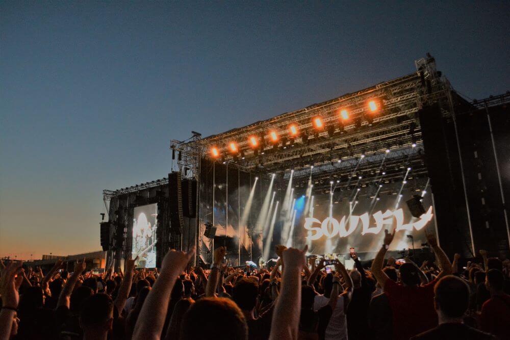 Και έρχεται η ώρα του Max… Ο αγαπημένος Βραζιλιάνος με τους SOULFLY ανεβαίνουν στη σκηνή. Un Dos Tres Jump! Και όλη η πλατεία αρχίζει να χοροπηδάει! Η μπάντα σε πολλά κέφια και ο Max πολύ επικοινωνιακός μιλά συνέχεια με το κοινό, ζητά να ανοίξει το pit και το κοινό ανταποκρίνεται άμεσα, σετ σφιχτό αλλά και με ένα ιντερλούδιο του Get Up Stand Up του Bob Marley που μας έβαλε να τραγουδήσουμε μαζί του. Όλη η μπάντα τα δίνει όλα με τον αγνό παραδοσιακό τρόπο, headbanging και riffs. Και λίγο πριν το τέλος ακούγεται το καρδιοχτύπι και πάνω στη σκηνή μαζί με τον Max ανεβαίνει ο τραγουδιστής των Melecesh Ashmedi και λένε παρέα το Refuse/Resist.