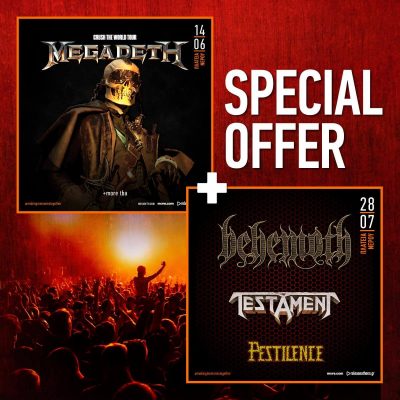 Διήμερο Εισιτήριο / Megadeth & more tba (14/6, Πλατεία Νερού) + Behemoth, Testament, Pestilence (28/7, Πλατεία Νερού) προς 73€ (κέρδος 10€)