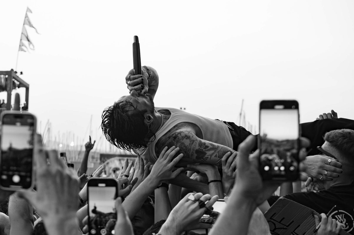 Το δυνατό χαρτί του συγκροτήματος βέβαια, πέραν των ρυθμικών και αλήτικων (Άγγλοι βλέπεις) συνθέσεων, αποδείχθηκε πως ήταν η επικοινωνία τους με το κοινό, που τους ανταπεδιδε όλη τους την ενέργεια εις διπλούν. Και ξεκινάνε τα crowdsurf, και ανοίγουν και τα mosh-pit που δεν ξανά έκλεισαν μέχρι το τέλος, και τα χαμόγελα και η έκπληξη από την σκηνή για τις αντιδράσεις του κοινού είναι κάτι παραπάνω από εμφανή. Δεν νομίζω ότι περίμεναν τέτοια κατάσταση. Προσθέτοντας σε όλα τα παραπάνω, ο κιθαρίστας του συγκροτήματος Sean Long αποφασίζει να κατέβει μέσα στο πλήθος και να πάρει θέση στο κέντρο του pit, μόνο για να ακολουθήσει ο Taylor τραγουδώντας πάνω στα χέρια των οπαδών. Ε, ζήλεψε μάλλον και ο μπασίστας Aaran McKenzie και είπε να κατέβει και αυτός μέσα στον κόσμο προκειμένου να ανοίξει ο ίδιος με τα χέρια του (και το μπάσο του σαν προέκταση) το τελευταίο wall of death. Και πάρε τις φωτιές και πάρε και τα riff και τις groove-ες. Τρομερή ανταλλαγή ενέργειας ανάμεσα σε μπάντα και κοινό, φοβερή διαχείριση δυναμικής. Μας λείπουν τέτοια live και αν το ένιωσα εγώ έτσι,που δεν έχω επαφή με την μπάντα, ο κόσμος τους πρέπει πραγματικά να τα είδε όλα. Μακάρι το μέλλον αυτής της μουσικής να είναι σε χέρια όπως των WHILE SHE SLEEPS, προκειμένου να έχει αύριο. Αυτές οι γραμμές γράφονται υπό τους ήχους του τελευταίου τους δίσκου, οπότε κάτι πήγε πολύ καλά.