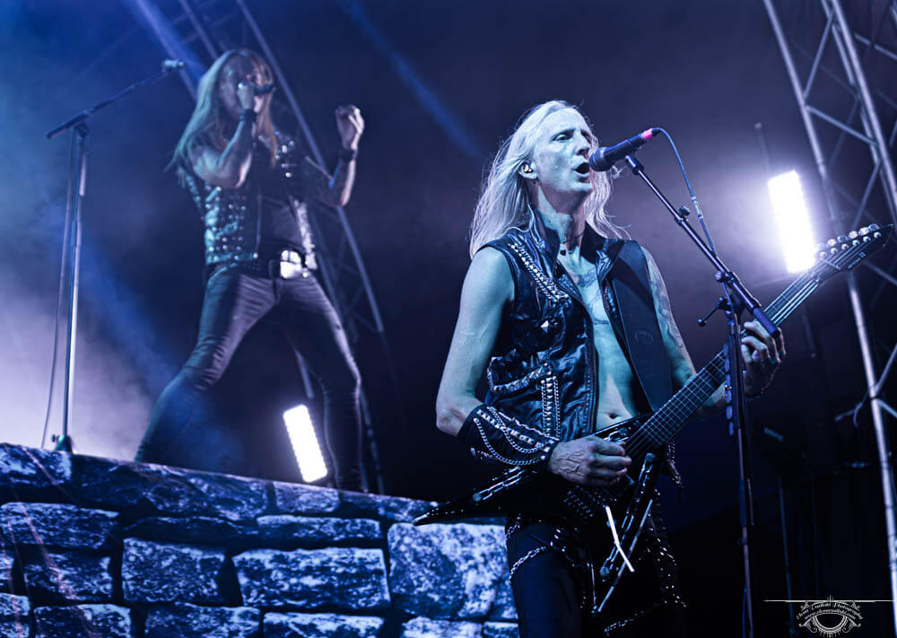 Τρομακτικά δουλεμένο συγκρότημα, φοβερά προσεγμένα όλα στην παραμικρή λεπτομέρεια. Από τα ομαδικά ρυθμικά a la Judas Priest χτυπήματα μέχρι της αλλαγές στους δύο “πέτρινους” πύργους που είχαν στηθεί δεξιά και αριστερά του drum kit. Δερμάτινα και πόζες που οκ, περιέχουν μια κάποια ίσως γραφικότητα αλλά από την άλλη, στο είδος αυτό νομίζω πως περνάει πολύ πιο εύκολα από ότι σε οποιαδήποτε άλλη περίπτωση. Βοηθάει φυσικά και το κομμάτι των συνθέσεων που έχουν αυτό το πομπώδες, arena friendly και sing along χαρακτήρα. Δεν μπορώ να αρνηθώ πως, σε πολλά από τα πιο Judas Priest vibe μουσικά κομμάτια τους, βρήκα τον εαυτό μου να εκπλήσσεται ευχάριστα. Τους πάει πολύ αυτό το ηχόχρωμα και τιμούν την όποια επιρροή τους εξαιρετικά καλά. Και μιλώντας για εξαιρετικά πράγματα, θα ήμουν τρομερά άδικος αν δεν ανέφερα πόσο καλός τραγουδιστής είναι ο Joakim Cans. Προσγειωμένος, μετρημένος, με φοβερή έκταση και δυνατότητες, παρόλα αυτά χωρίς αχρείαστες “ποζεριές” και όρεξη για επίδειξη. Και με τρομερή απόδοση και επίδοση σε όλη τους την εμφάνιση. Σε αυτό με κέρδισε πλήρως, καθώς και στο πόσο ευχάριστος είναι στην επικοινωνία του με τον κόσμο. Γνήσιος στα λόγια του, παρόλο που υπήρξαν στιγμές που το κοινό φάνηκε ολίγον μουδιασμένο ή κουρασμένο.