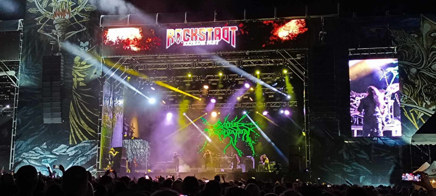 Στη σκηνη εμφανίζεται το πράσινο λογότυπο και η αιτία που πήγα την πρώτη μέρα στο φεστιβάλ. Οι CATTLE DECAPITATION. Τέτοια επιθετικότητα , τέτοιον οδοστρωτήρα είχα χρόνια να ακούσω ζωντανά. Χαοτικά υπέροχοι έγιναν η αιτία για πολλά pit που άνοιξαν αλλά και το θαυμασμό του κοινού. Έπαιξαν μια γεμάτη ώρα που δεν κούρασε καθόλου παρά την δυσκολία της μουσικής που παίζουν. Φέρτε τους Ελλάδα ρεεε!